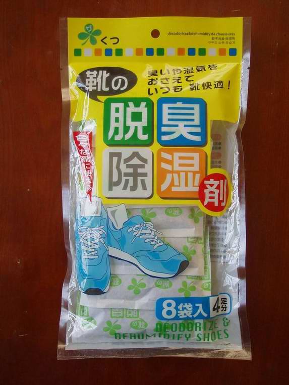 30克鞋专用干燥剂,包装:复合纸 。成分:2-4A型硅胶,活性炭。